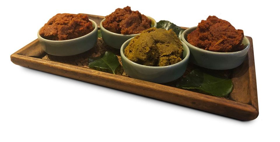 In dieser Mischung finden sich getrocknete Chilis, Knoblauch und Shrimpspaste wieder. Diese sehr scharfe Paste findet Verwendung bei Geflügel-, Meeresfrüchte- und Fischgerichten.